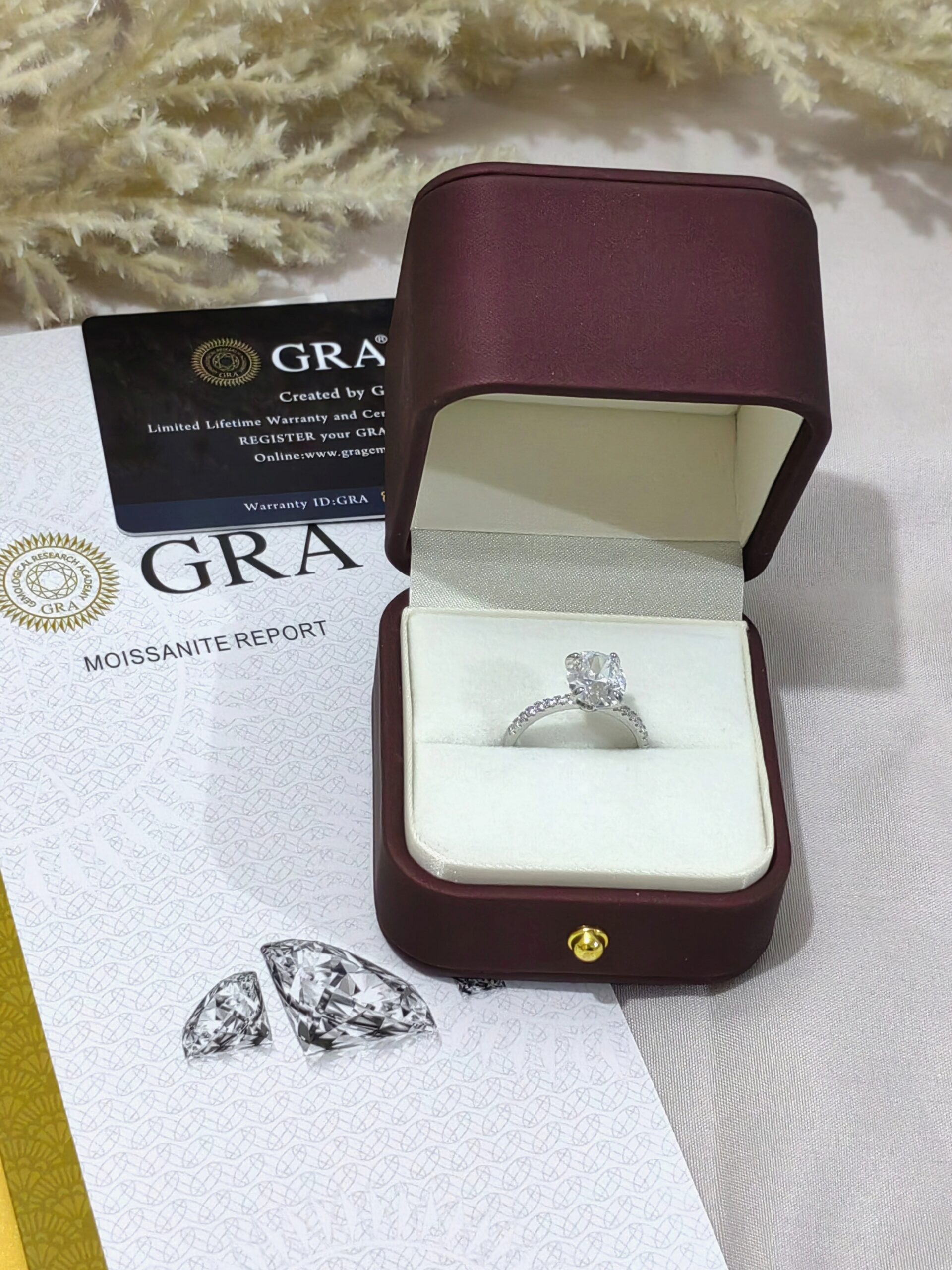 3 carat Oval Moissanite Ring with Side Stones.